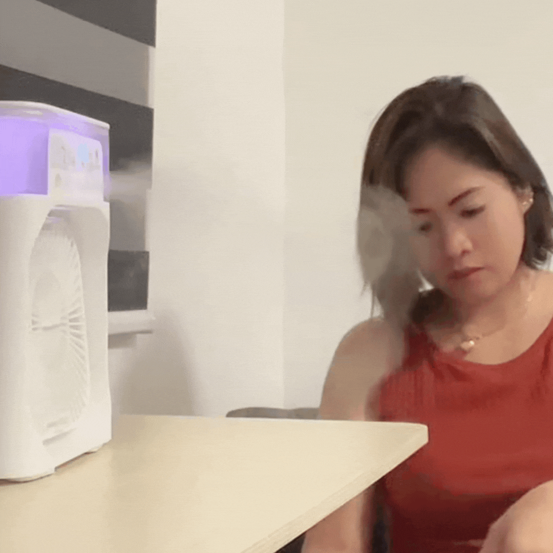 Compacte, eficient i sense fils, refreda amb tecnologia moderna d'evaporació – perfecte per a dies calorosos a casa, a l'oficina o de viatge. Només cal omplir d'aigua, encendre i gaudir de la brisa fresca.