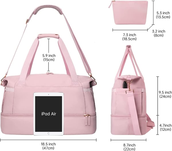 ✔ Separació sec/mullat: la bossa impermeable amb revestiment de PVC manté els objectes mullats aïllats de manera segura i la bossa de maquillatge inclosa assegura que sempre llueixis el millor aspecte.