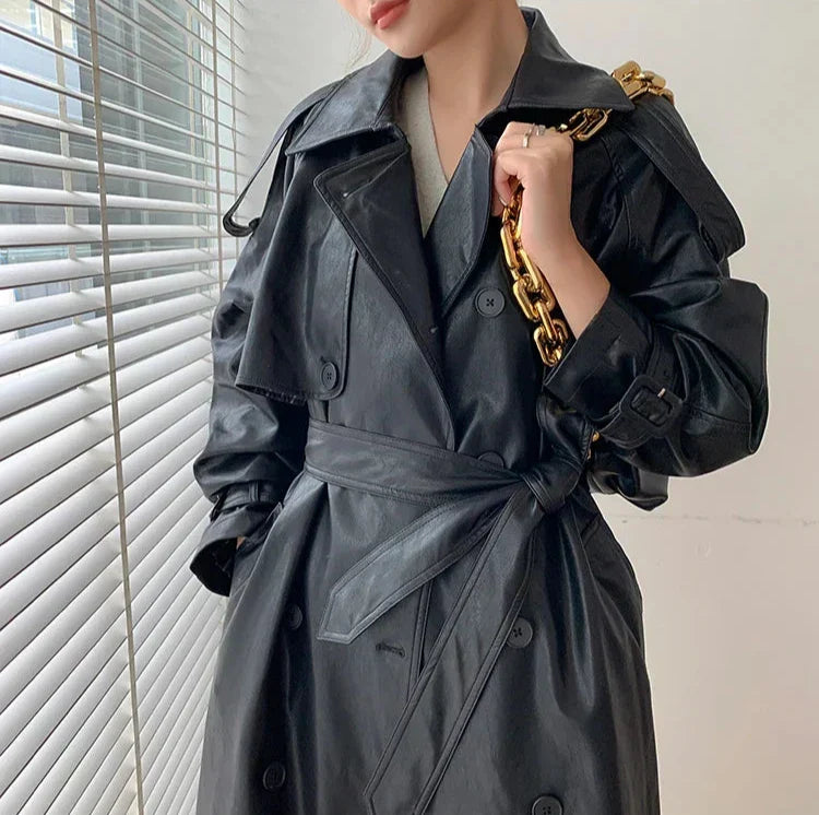 Aquest abric elegant ofereix un aspecte de pell atemporal accentuat per punys amb detalls de cinturó amb estil.