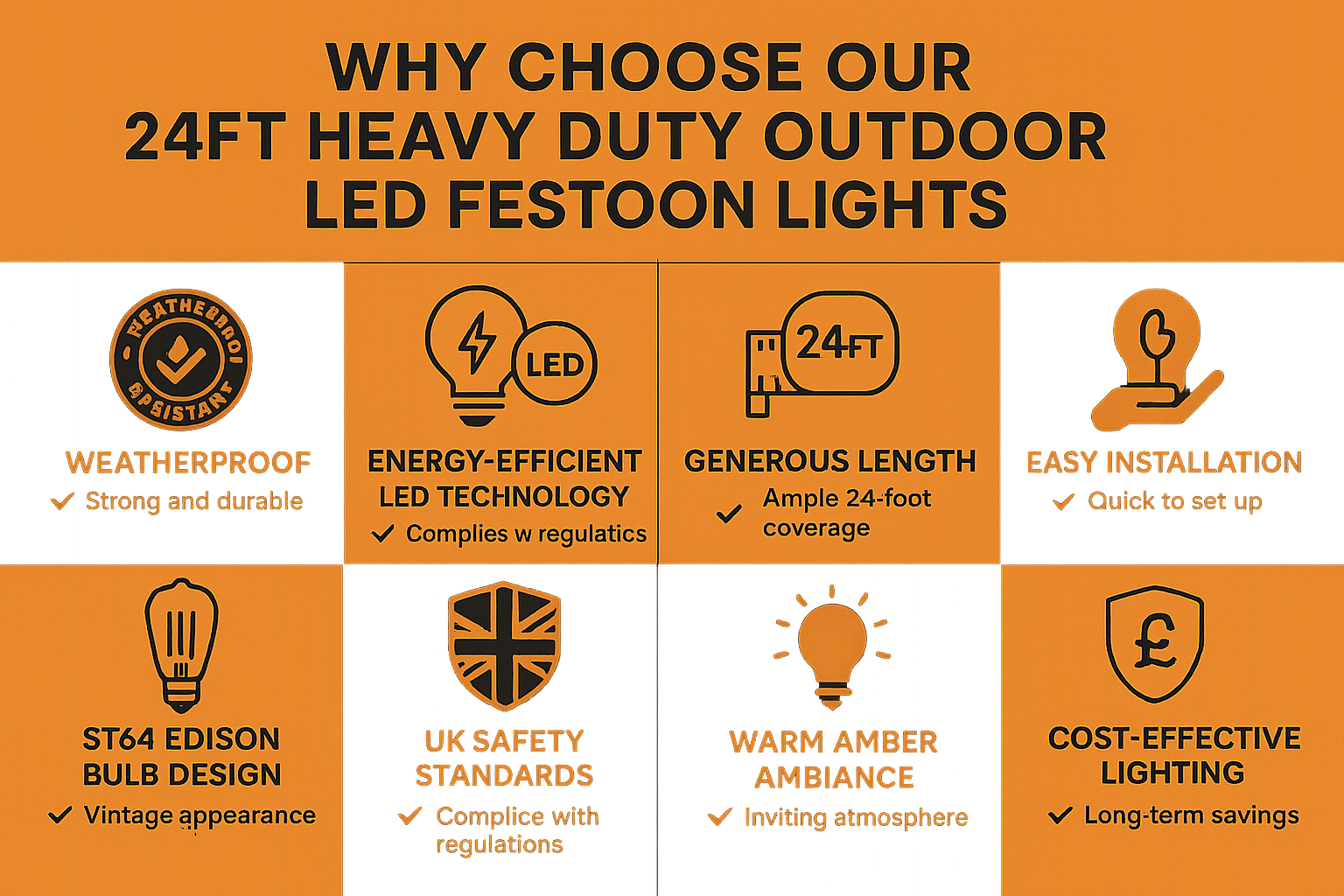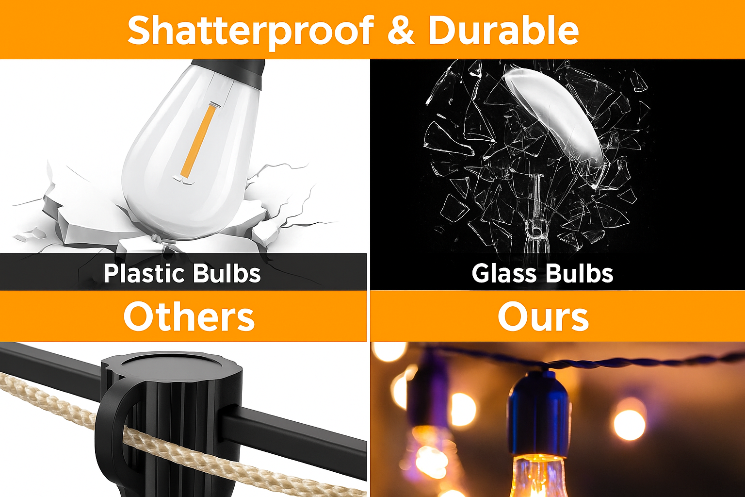 This 24FT long string light with 25 durable LED bulbs is fully weatherproof and built for long-lasting use. Thanks to the connectable design, you can link multiple sets to easily illuminate larger spaces.