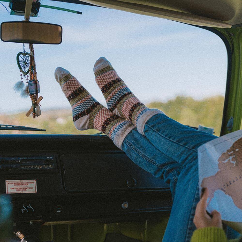 Nuestros calcetines de lana son ultra suaves y flexibles gracias a la mezcla perfecta de lana tejida en jacquard. Por lo tanto, son muy suaves, cómodos, transpirables, portátiles, absorben la humedad y combaten los olores.