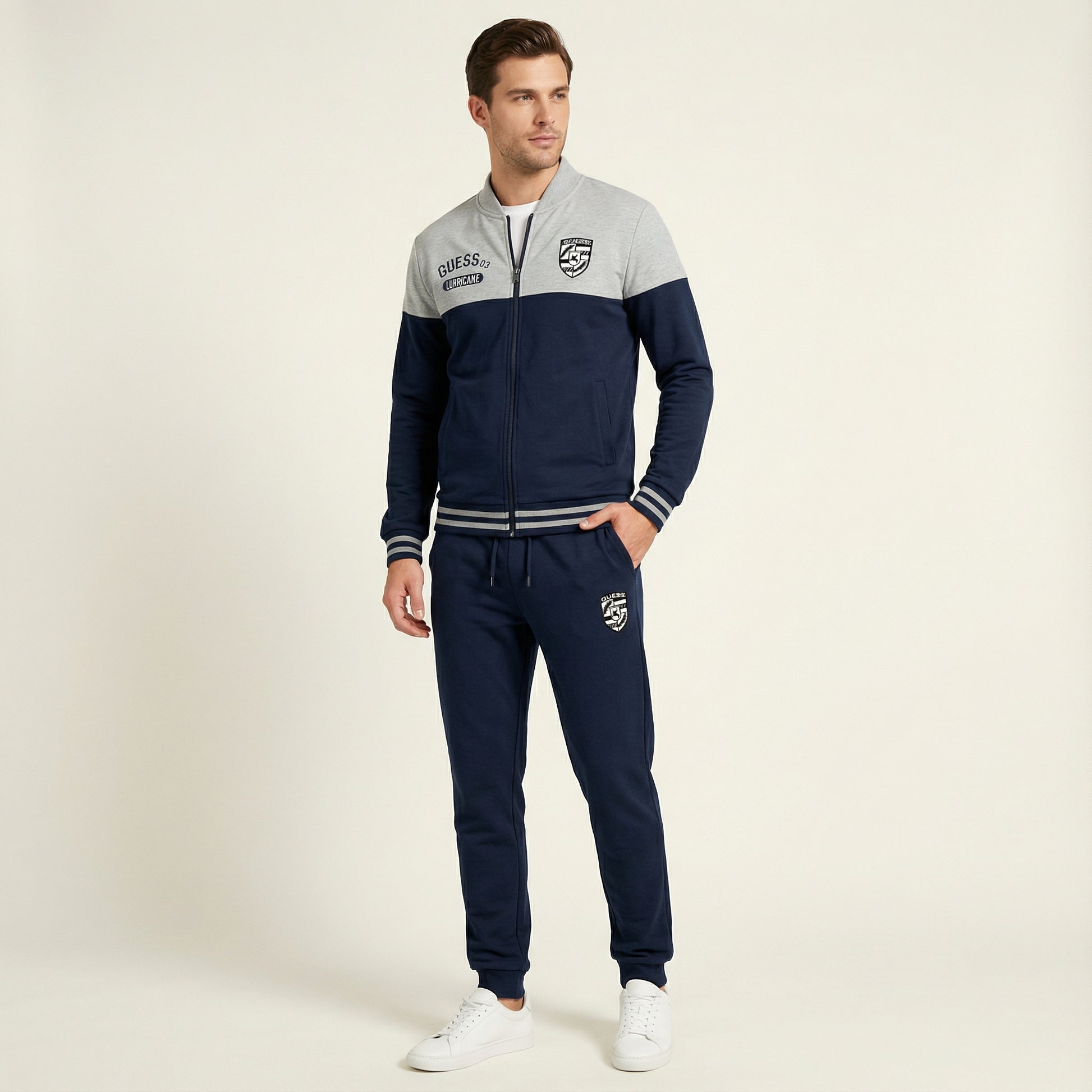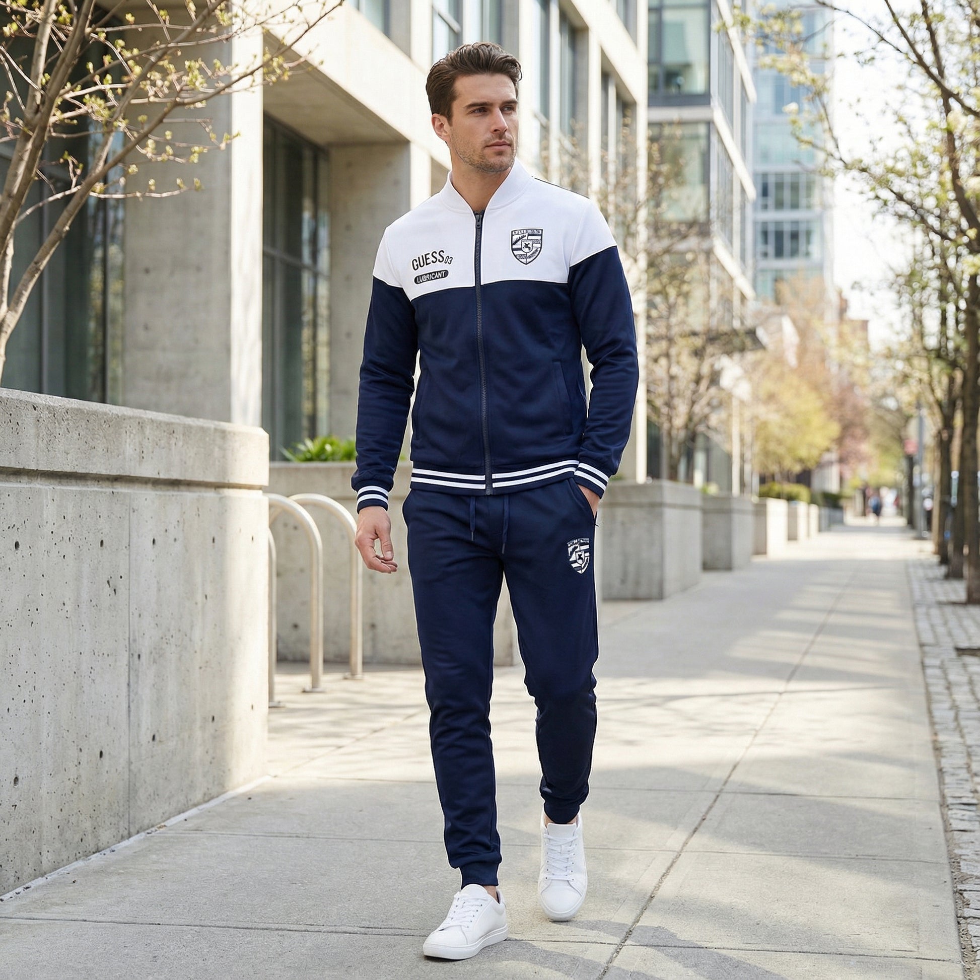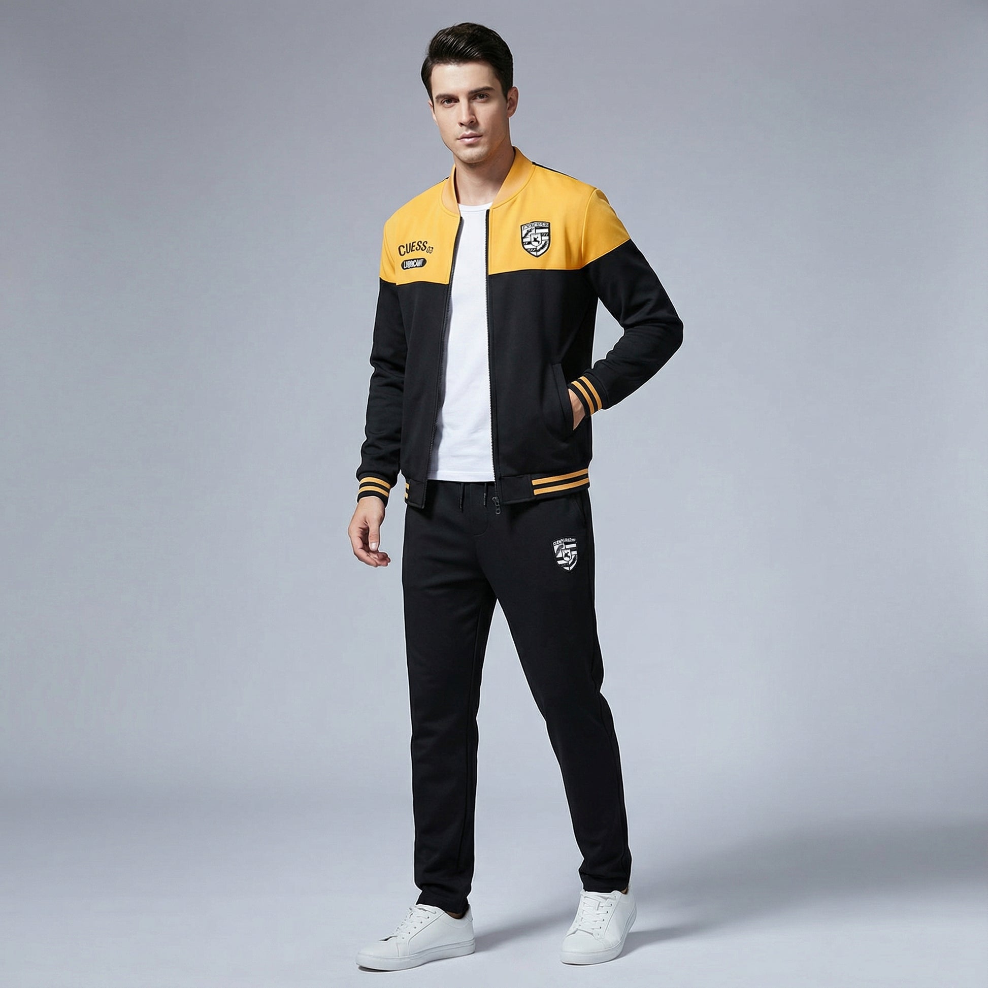 Este conjunto de entrenamiento para hombre está diseñado para uso diario y combina un aspecto deportivo con comodidad práctica. El diseño inspirado en el béisbol ofrece un look cuidado adecuado para diferentes momentos informales.