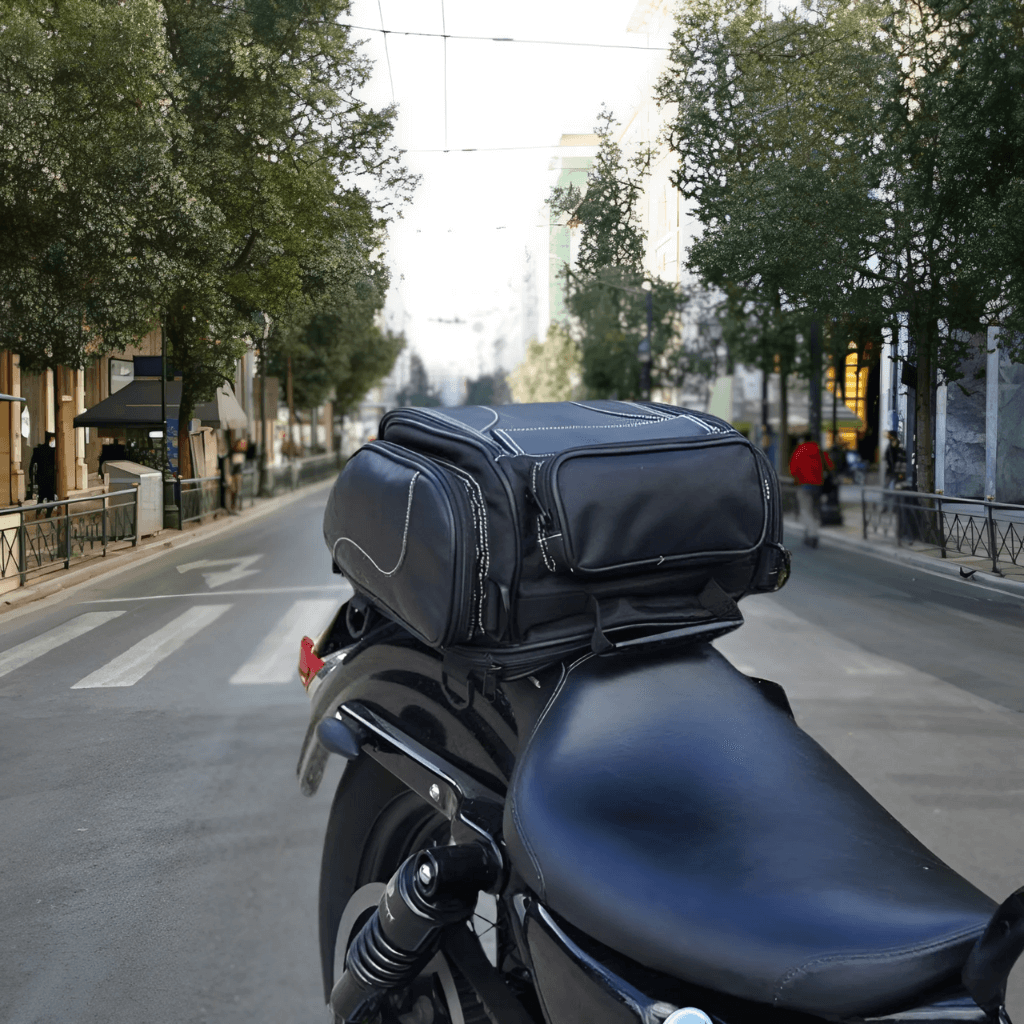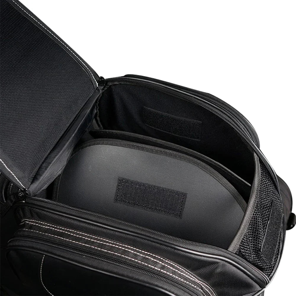 ¡Mantén tus objetos más valiosos seguros en el camino! Hecho de cuero PU de alta calidad. Esta bolsa está diseñada para la mayoría de las motocicletas y motos de cross. Ofrece suficiente espacio para tu casco, teléfono, cartera y más.