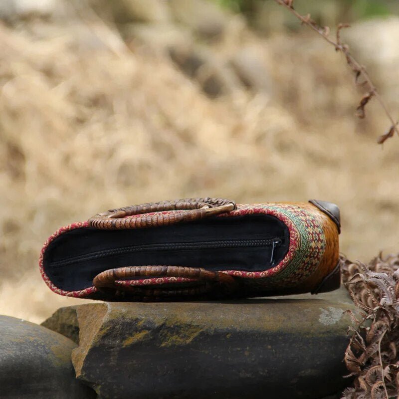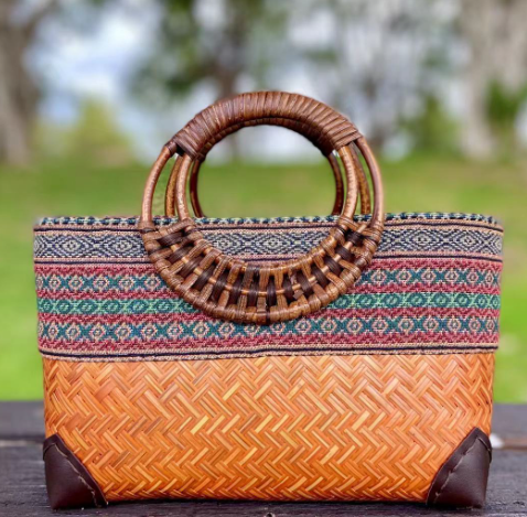 El bolso Melzano Sakura está hecho de bambú de alta calidad y destaca por su estructura tejida única.