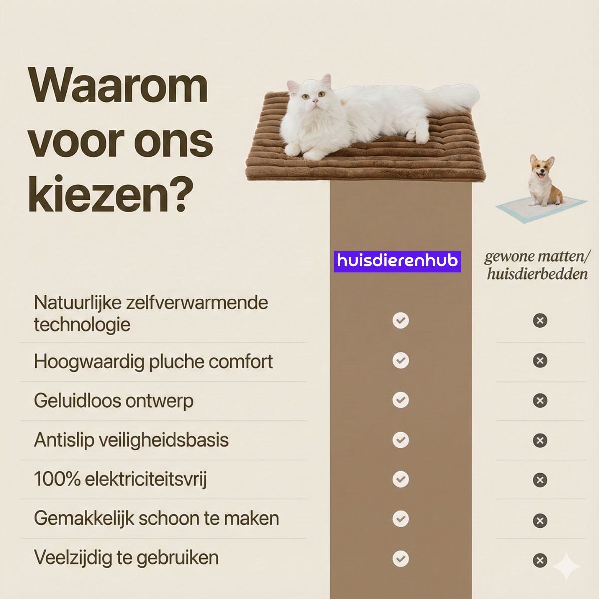La alfombrilla auto-calentante para mascotas que ofrece calor sin electricidad ni baterías. Perfecta para perros, gatos y otras mascotas. Suave, cómoda e ideal para casa, en el camino o al aire libre. Dormir en suelos fríos o duros puede causar dolor en las articulaciones y a largo plazo incluso artrosis en las mascotas. ThermoMat refleja la temperatura corporal de tu mascota y crea un calor agradable, mientras que su diseño suave y ergonómico soporta las articulaciones, reduce los puntos de presión y ayuda a prevenir molestias futuras.